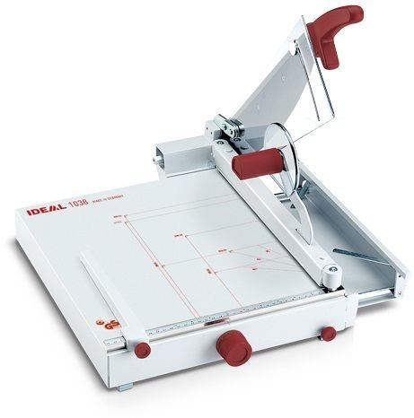 — 最寬剪裁: 385mm — 每次界紙張數: 約50張(70g) — 檯面尺寸 W x D: 356 x 403mm — 量度格式: A4 – A6 — 量度單位: mm / inches — 尺寸: H260 x W410 x D575mm — 重量: 9 kg